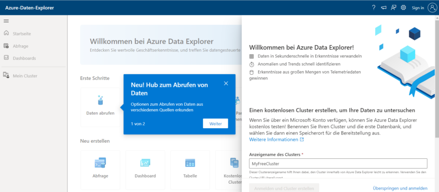 Der Azure Data-Explorer (ADE) bringt zwar wie gesehen auch das zugehörige Web-Frontend mit, ist aber in erster Linie eine vollständig verwaltete, leistungsfähige Big-Data-Analyseplattform, auf die sie mit einem passenden Account jederzeit über das Internet zugreifen können. Diese ermöglicht ihnen das Analysieren großer Datenmengen nahezu in Echtzeit und vereinfacht das Abfragen von Telemetriedaten, Protokollen, Ereignissen, Ablaufverfolgungen und Zeitreihendaten mit sehr hoher Leistung.